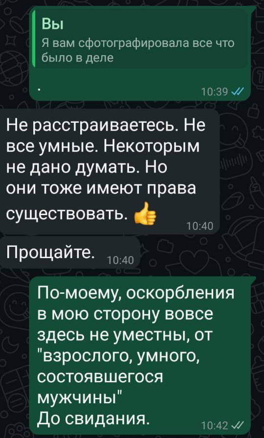 Сообщение начинается со слов, «ГДЕ ОБОРОТНЫЕ СТОРОНЫ КАЖДОГО ДЕЛА?», не знаю, для чего, может быть оценить качество обложки, цвет или какой в этом еще может быть смысл? Однако, он мне написал: «Мне нужно было сфотографировать, как я просил, фото дела, именно последнюю корочку. Там архив пишет, когда дела берут для ознакомления между судьями» — цитата.