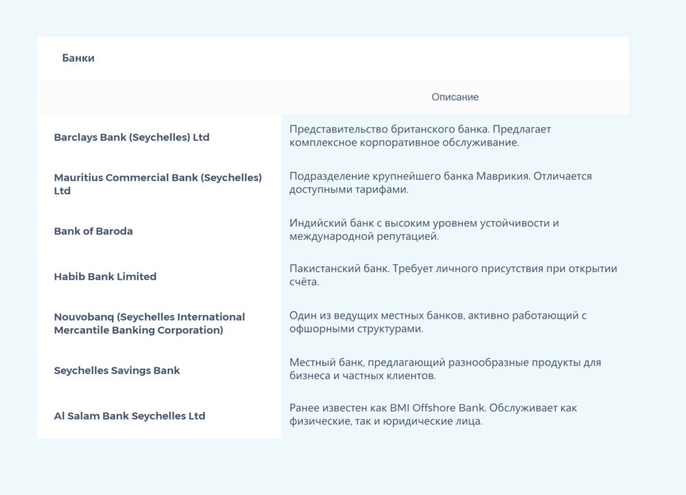 Банки, работающие с иностранными корпоративными клиентами на Сейшелах