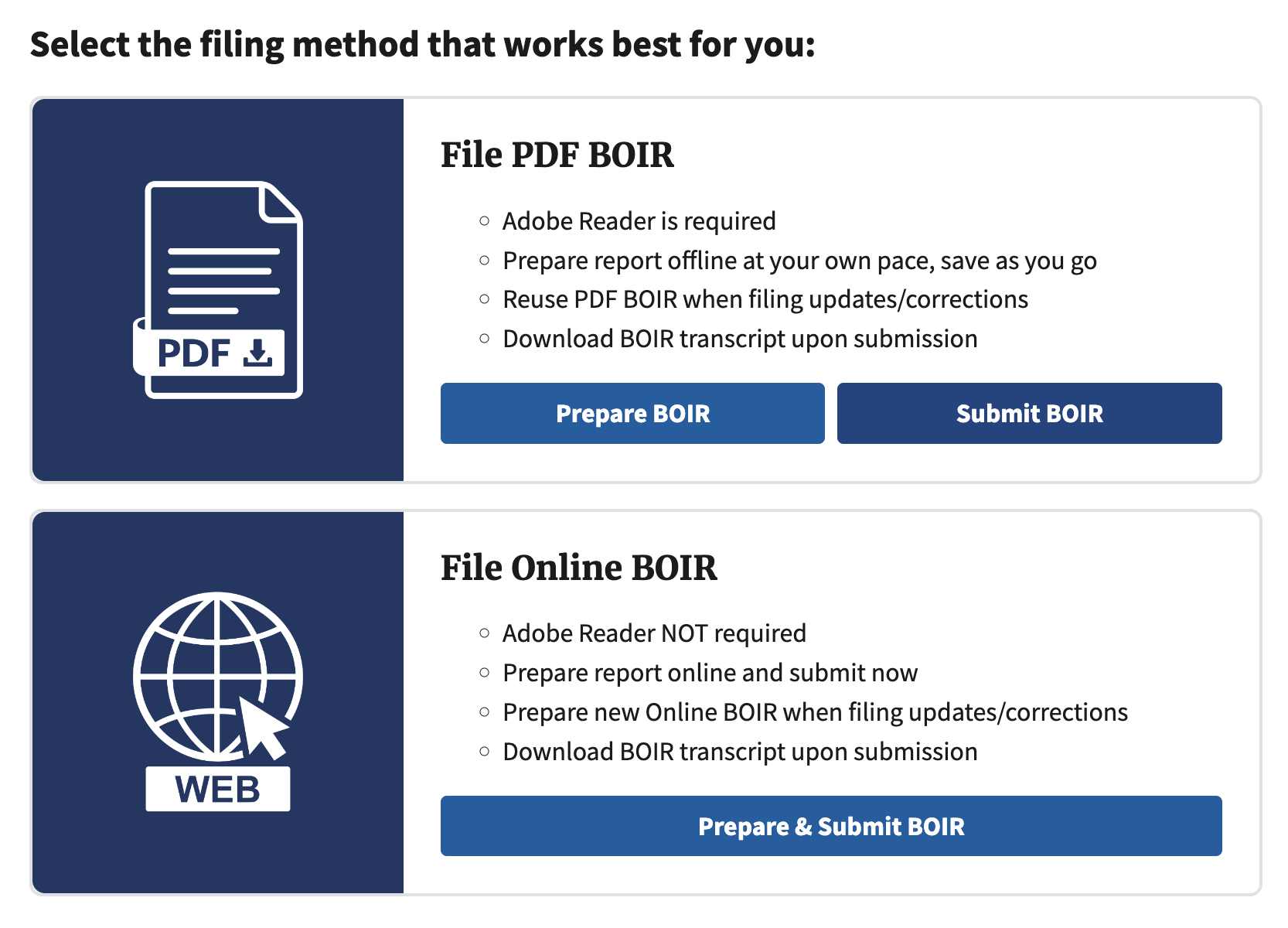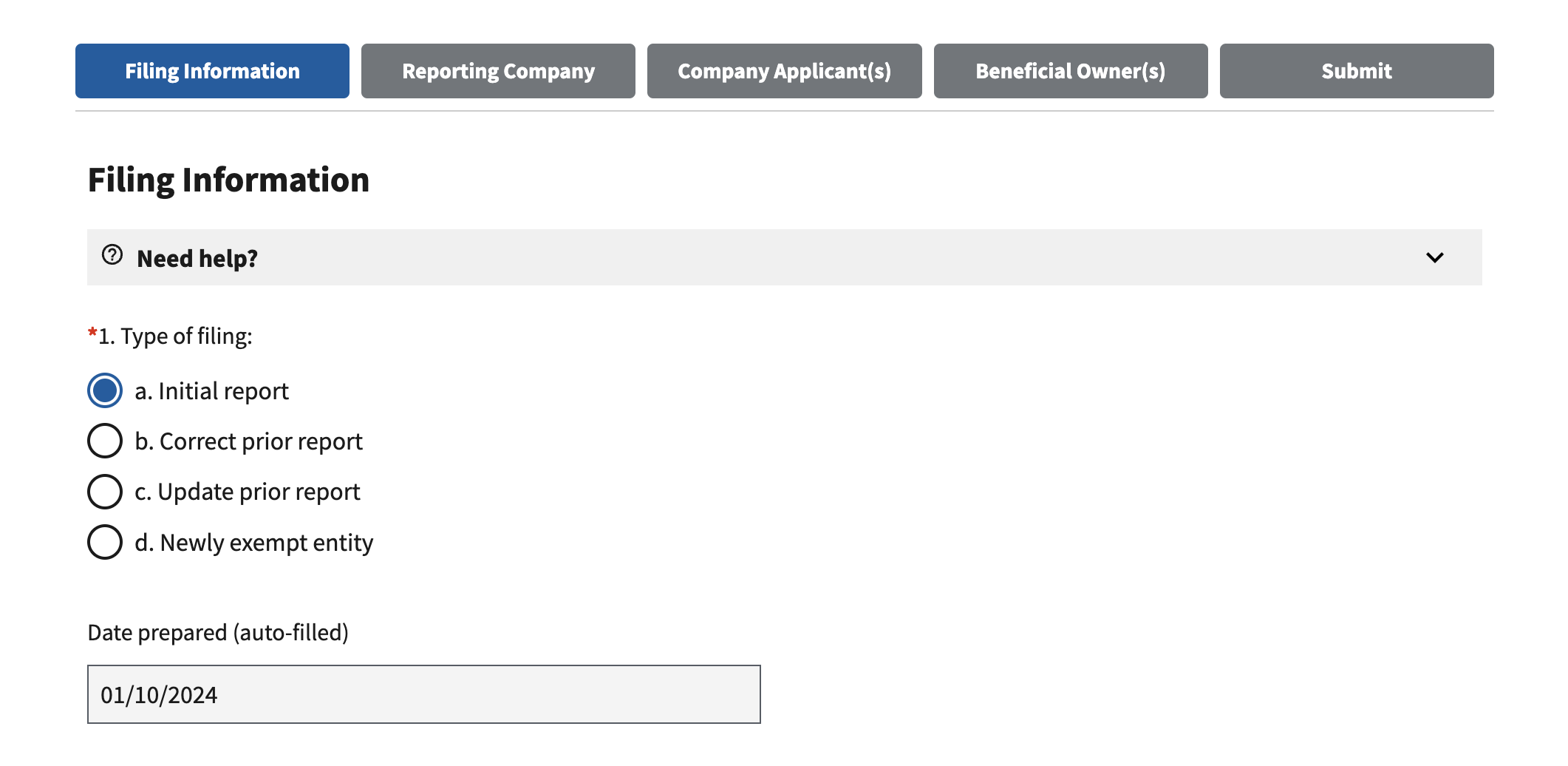 Тут можно выбрать способ подачи: загрузить PDF, заполнить форму на сайте или автоматизированными способами по согласованию с FinCEN (это забота вашего провайдера корпоративных услуг).